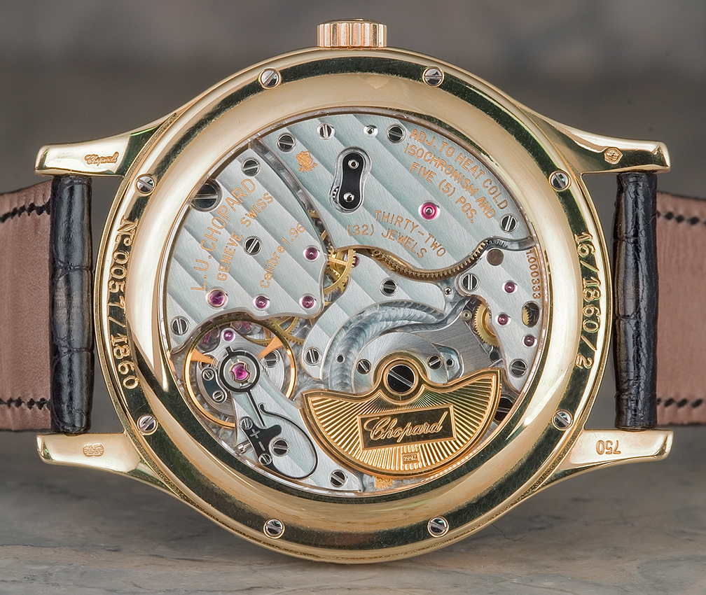 Chopard has given these new movements and associated watches the name "L.U.C." as homage to its founder Louis-Ulysse Chopard, and to mark the firm's return to its origins as a producer of ultra-high quality watches after some two-plus decades of concentrating mostly on the jewelry trade. The initial watch was the exclusive 1.96, followed shortly by the handwinding 1.98 (with 9 day power reserve), and slightly less finished siblings, 3.96 and 4.96 (with sweep seconds, but not Geneva Seal) and the tonneau-shaped 6.96; I believe this latter has recently been shown also in a version with tourbillon.