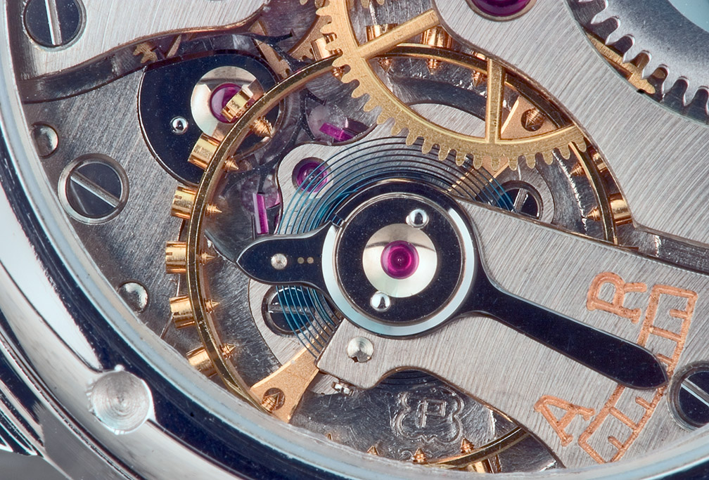 At 13 lignes (just under 30mm) diameter, the 260 is at the size limit for its category, and the 13.5mm diameter balance is obviously as large as possible. Likewise, the barrel is over 12mm diameter to allow for the longest possible mainspring and consistent torque supply. Other refinements appropriate to a movement of such narrow application are not obvious, but the finish of the bridges, teeth and screws is exemplary, if not especially decorative. This particular movement has been custom-cased and wonderfully dialed, and provided a neat display back. I have no evidence that the Be-Ba's movement was ever submitted for testing, or entered into competition, but even if, as with the street-legal homologation of certain racing automobiles, it turns out to be just intended for a well-informed consumer, it is still a great, pure-bred engine dressed in beautiful if appropriately subtle clothing. As of the moment, the origins and meaning (if any) of the appelation "Be-Ba" remain charmingly undetemined.