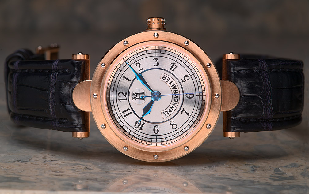 Over the past 5 or so years, Vianney Halter has created his niche in the world of independent watchmaking with designs that always surprise, and often delight and astonish. Even those who do not like the style of his watches generally recognize that they represent a good-faith effort by a remarkably imaginative and capable watchmaker to realize a vision which truly is unique in a field already crammed with derivative products. Although generally produced in vanishingly small quantities, the range of Halter's watches in this brief time is considerable; below are publicity pictures of his Antigua (and associated Contemporaine), the rectangular Trio and Goldpfeil edition, the original version of the present Classic and the still-evolving Opus 3 for Harry Winston: